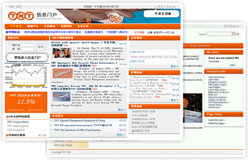 為TNT中國實現(xiàn)的“TNT協(xié)同辦公門戶系統(tǒng)”具有中英文雙語自由切換的功能,該特性也是眾多中外合資及純外資企業(yè)所關(guān)注的重要選項之一。