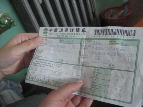 記者看到,這張單據(jù)上寫有寄件人和收件人的詳細(xì)內(nèi)容,但經(jīng)辦人一欄里卻是空白。