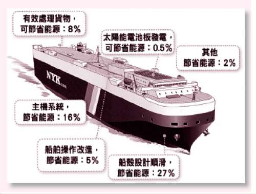 【大公報訊】日本郵船(NYK)提出環保意識的冷凍地球「CoolEarth」計劃的第一階段正式啟動。公司撥出經費700億日圓,為了經由提高發動機效能、改進船體線型、使用燃料電池、應用「水下空氣洞」技術、安裝太陽能電池板、改善螺旋槳管理、利用風力等一系列措施,大幅減少二氧化碳排放。