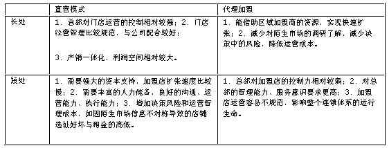 表1.1連鎖經(jīng)營(yíng)兩種模式的優(yōu)劣分析