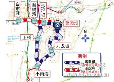 市規(guī)劃局表示,按國務院批復的《重慶市城鄉(xiāng)總體規(guī)劃(2007—2020年)》規(guī)定,今后我市將利用西永至銅罐驛的鐵路西銅便線、菜園壩至西彭的成渝鐵路線等,開行菜白線(菜園壩—沙坪壩—梨樹灣—白市驛)、中環(huán)線(菜園壩—沙坪壩—上橋—小南海—九龍坡—菜園壩)城市客運列車,作為城市公共交通的補充,菜園壩無疑將是始發(fā)站點。