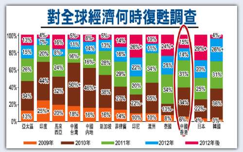 調(diào)查顯示,六成香港中小企認為全球經(jīng)濟將于明年后才復蘇,高于亞洲區(qū)平均錄得的54%。在亞太區(qū),印度及臺灣的中小企業(yè)在此方面最為樂觀,認為全球經(jīng)濟將于今年或明年間復蘇,百分率分別為69%及68%。