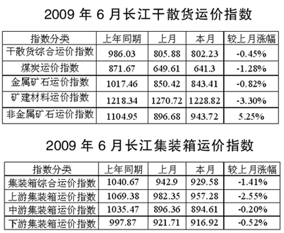 煤炭需求不旺,上游部分港口的煤炭到貨量減少,運力有所富余,因此,長江煤炭運輸行情仍處于低位調(diào)整,6月煤炭運價指數(shù)為641.30點,較上月下降1.28%,川、渝至寧、申長途航線的煤炭運輸單價最高為0.025元/噸公里。