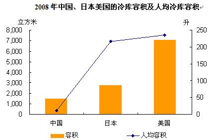 2008年,中國(guó)的冷庫(kù)容積為1500萬立方米,而美國(guó)為7074萬立方米,從人均容積來看,中國(guó)的人均冷庫(kù)容積不足美國(guó)的5%,由此可見中國(guó)的冷庫(kù)尚有待發(fā)展。