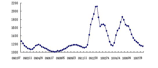 四是物流市場(chǎng)價(jià)格穩(wěn)中有降。中小型公路貨運(yùn)企業(yè)運(yùn)價(jià)經(jīng)過今年2月以來的持續(xù)下滑,7月出現(xiàn)回穩(wěn)跡象。大中型運(yùn)輸企業(yè)運(yùn)價(jià)較為平穩(wěn)。水路運(yùn)輸價(jià)格仍然低迷。7月末我國(guó)沿海散貨運(yùn)價(jià)指數(shù)報(bào)于1149點(diǎn),比6月末的1255點(diǎn)回落了106點(diǎn),比年內(nèi)最高的1860點(diǎn)回落了700余點(diǎn)。(參見圖4)