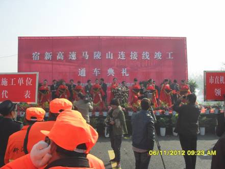 6日上午,出入口收費(fèi)處彩旗飄揚(yáng),伴著歡快的迎賓曲,參加通車典禮的各級(jí)領(lǐng)導(dǎo)依次登上了典禮臺(tái),9點(diǎn)30分市委常委、市委書記、市長趙立群宣布宿新高速馬陵山出入口工程正式通車,來自各相關(guān)單位的代表的代表共200多人參加了通車典禮。