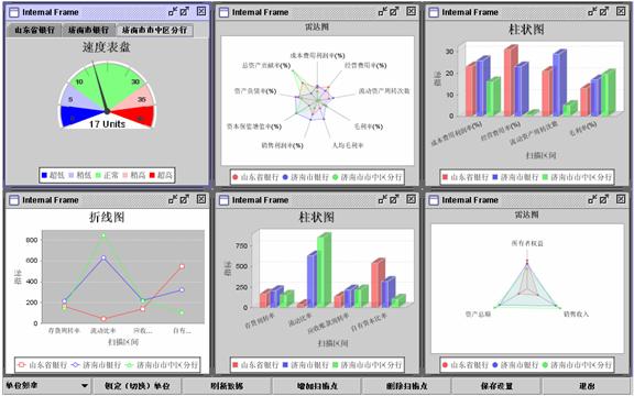 以駕駛艙的形式,通過各種常見的圖表(速度表、音量柱、預(yù)警雷達(dá)、雷達(dá)球)形象標(biāo)示企業(yè)運(yùn)行的關(guān)鍵指標(biāo)(KPI), 直觀的監(jiān)測企業(yè)運(yùn)營情況,并可以對異常關(guān)鍵指標(biāo)預(yù)警和挖掘分析?梢詫Ω鲉挝坏臄(shù)據(jù)進(jìn)行監(jiān)控和裝載,輪流顯示在雷達(dá)圖展示區(qū)域。