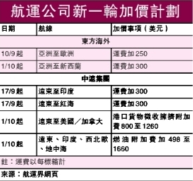 各班輪公司擬在9月不同程度提價,這似乎是希望遏制8月以來的運價急劇下降之勢。進入8月份,集裝箱運費每周都在以逾百美元的速度下跌,目前每標箱降至1200美元,難以實現各航運公司今年年內扭虧的期望。一旦扭虧失敗,中國遠洋和中海集運兩家公司在內地上市的股票均將被冠以ST!
