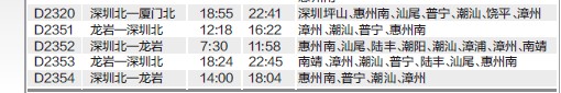 在這份時(shí)刻表中,從廈門北站始發(fā)的動(dòng)車到深圳北站最快需要3小時(shí)45分,加上從廈門島內(nèi)到廈門北站需要1小時(shí)左右,總的算起來也比乘長(zhǎng)途大巴節(jié)省3小時(shí)左右。