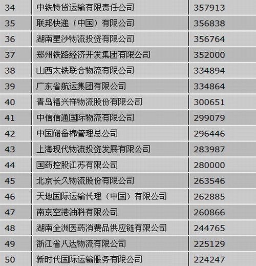 附件:2014年度中國(guó)物流企業(yè)50強(qiáng)名單