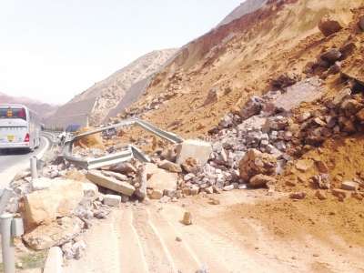 4月28日上午,記者趕到事故現(xiàn)場(chǎng)看到,定西公路總段的搶險(xiǎn)人員和車(chē)輛正在對(duì)路面上的沙石進(jìn)行清理。此次發(fā)生滑坡護(hù)高20米、長(zhǎng)100米,塌落的沙石幾乎將下方臨洮往蘭州方向近一百多米長(zhǎng)的路面全部覆蓋,路中央的隔離帶大部分都扭曲變形,還有一部分沙石還滑落到對(duì)面蘭州往臨洮方向的車(chē)道上,事發(fā)后,經(jīng)過(guò)搶險(xiǎn)人員連夜清理,事發(fā)路段臨時(shí)封閉,而蘭州往臨洮方向車(chē)道實(shí)行雙向通行。對(duì)于事發(fā)經(jīng)過(guò),一位搶險(xiǎn)人員告訴記者,4月27日晚11時(shí)50分左右,一輛由臨洮前往蘭州的車(chē)輛在快到新七道梁隧道時(shí),司機(jī)看到前方泛起黃土,隨即緊急停車(chē),他急忙下車(chē)借助轎車(chē)的燈光看到,原來(lái)是前方發(fā)生了滑坡,隨即該司機(jī)急忙撥打電話(huà)報(bào)警。接到報(bào)警后,蘭州市公安消防支隊(duì)緊急調(diào)集龔家灣中隊(duì)、特勤大隊(duì)一中隊(duì)的消防官兵趕赴現(xiàn)場(chǎng),消防官兵首先在現(xiàn)場(chǎng)周?chē)鹆司渚(xiàn),隨即消防官兵攜帶生命探測(cè)儀,在滑落的沙土上開(kāi)展搜索。經(jīng)過(guò)消防官兵一個(gè)多小時(shí)的全方位搜索,確定滑坡未造成人員和車(chē)輛被埋。瞬間發(fā)生的滑坡事故,造成臨洮往蘭州方向的車(chē)道被全部覆蓋,還有一部分沙石沖到對(duì)向車(chē)道上,為避免發(fā)生二次事故和造成對(duì)向車(chē)道車(chē)輛堵塞,參加搶險(xiǎn)的消防官兵馬上利用各種工具,對(duì)堆積在對(duì)向車(chē)道上的沙石展開(kāi)清理。至28日凌晨,清理工作結(jié)束,在高速交警的指揮下,疏通的路面實(shí)行單幅雙向通行。