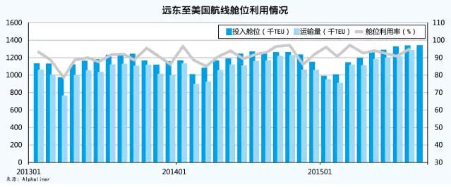 與亞歐航線量價齊跌的態勢相比,美國航線今年以來表現好于市場預期,遠東至北美航線艙位利用率維持在90%以上。
