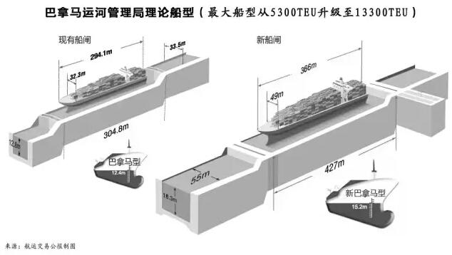 而最終巴拿馬運河管理局定義的巴拿馬最大船型為:長366米,寬49米,吃水15.2米,這意味著可以通過運河的最大集裝箱船可以達到1.33萬TEU(見圖)?梢灶A計,巴拿馬運河拓寬后,1.4萬TEU型船將進入美東航線,該航線并有可能進一步延伸,形成東西向的環球航線。巴拿馬運河拓寬通航后,亞洲經巴拿馬運河至美東,與亞洲經印度洋和蘇伊士運河、最后跨大西洋至美東將可使用8000~1.2萬TEU相同型船。因此,在巴拿馬運河擴建后,這兩條航線極有可能部分合并,形成一條適應性更好的環赤道全球航線,班輪公司通過沿途合理攬貨安排可解決集裝箱船東西行重箱和空箱不平衡問題,提高船舶運營效益!秳谑先請蟆氛J為,一些航運企業或考慮重開環球航線?缣窖蠛骄的船舶在抵達美東后,繼續橫跨大西洋至歐洲,最后通過蘇伊士運河返回亞洲,也可出現西行方向環線。整體來看,新環球航線很可能配合相關的支線網絡,在接下來的五年內誕生。
