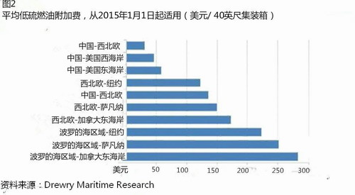 2014年5月下旬,德魯里(Drewry Shipping Consultants)的《集裝箱洞察周刊》(Container Insight Weekly)提醒承運商,新的低硫燃料的環境法規將于2015年1月生效。大約5個月后,一些承運商為了轉嫁“硫稅”,最終公布了他們會向托運人收取的相關附加費。