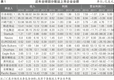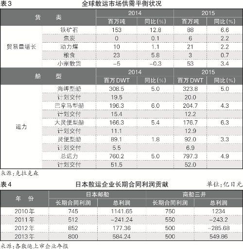 海運需求低速增長,運力供給持續過剩,似乎成了國際散貨運輸市場的新常態(見表3)。如此的新常態特征可能長期壓制干散貨運輸市場的景氣度恢復,也使競爭格局日趨白熱化和“紅!被。在市場壓力下,散運企業不得不研究應對之策,尋找生存之道。