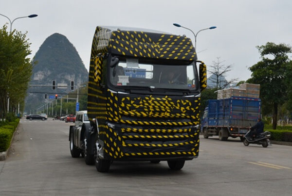 通過隨后網(wǎng)友強(qiáng)大的搜索能力,一張被挖出的工信部公告照片最終為我們揭開了“豹紋”下隱藏的廬山真面目!根據(jù)公告信息,這款新車確定為柳汽新重型平臺產(chǎn)品H7,車型為6x4牽引車。