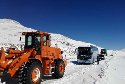 2月4日,武警交通四支隊官兵在清除道路積雪。受連續(xù)降雪影響,新藏公路西藏阿里段大面積積雪斷通。記者從擔負新藏公路養(yǎng)護保通任務的武警交通四支隊獲悉,目前,阿里至薩嘎段已實行交通管制,因暴風雪受困的59名群眾已被成功轉移安置。