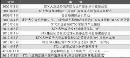 去年5月,STX大連向法院申請破產重整。據STX(大連)造船等6家企業的重整管理人北京中倫律師事務所透露,6家企業系全球第四大造船企業韓國STX集團在華子公司,該次重整涉及的資產和債務金額高達數百億元,系中國法院近年來受理的資產金額最大的一樁重整案。