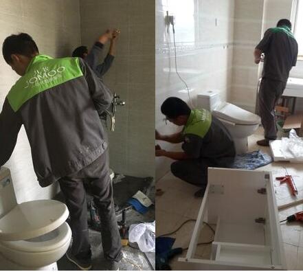 九牧售后人員安裝馬桶、花灑