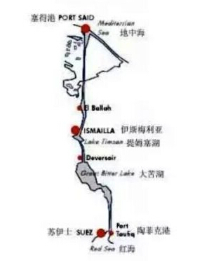 意義的國際海運航道,圖1標明了蘇伊士運河的位置。
