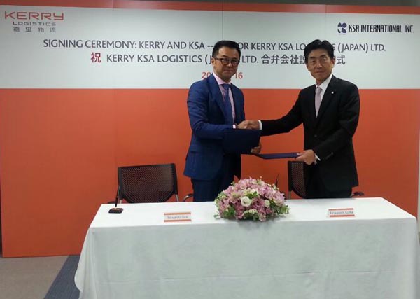 擁有亞洲最強網(wǎng)絡(luò)的物流服務(wù)供應(yīng)商嘉里物流聯(lián)網(wǎng)有限公司(「嘉里物流」,股份代號636.HK),宣布與KSA(KSA INTERNATIONAL INC.)簽訂正式合作協(xié)議,雙方共同出資于日本成立合資公司。其中,嘉里物流持有合資公司51%的股權(quán),KSA持49%的股權(quán)。簽字儀式于2016年6月16日在日本東京舉行。