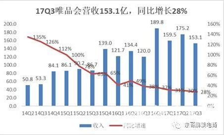 11月21日,唯品會發(fā)布了2017年第三季度財報。今年7月-9月,唯品會實現(xiàn)營業(yè)收入153.1億,同比增長27.6%。歸屬股東凈利潤3.38億元(GAAP)或5.6億元(Non-GAAP),與去年同期基本持平。