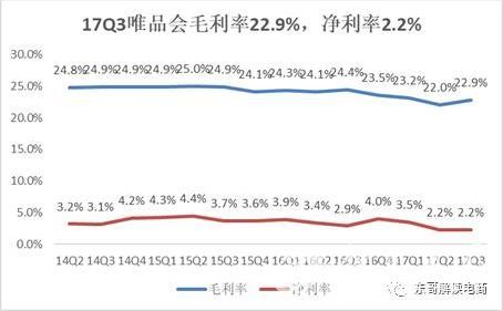 本季度,唯品會毛利率22.9%,同比下降1.5個百分比,但環(huán)比來看已經(jīng)進入回升階段。凈利率2.2%,同比小幅下跌0.7個百分比,環(huán)比則持平,止住了連續(xù)兩個季度的跌勢。