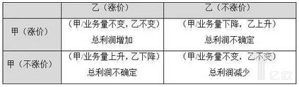 如上圖所示,四象限圖中快遞企業(yè)按照漲價(jià)和不漲價(jià)可以出現(xiàn)四種不同的結(jié)果: