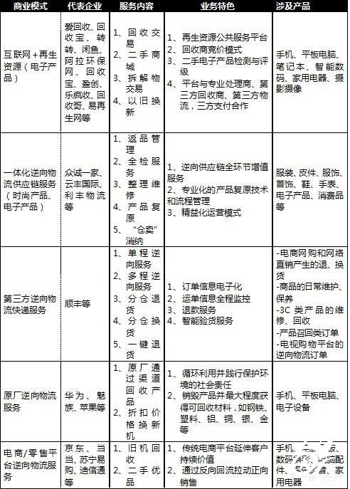 從目前國內(nèi)逆向物流整體商業(yè)生態(tài)來看,大體可以歸納為5種商業(yè)模式,見表1。