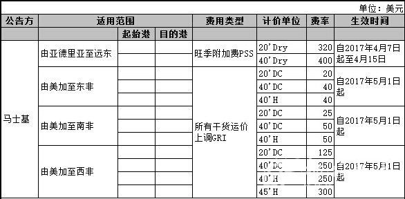 根據記者對船公司運營跟蹤顯示,馬士基航運等船公司發布最新運價調整計劃,如下所示: