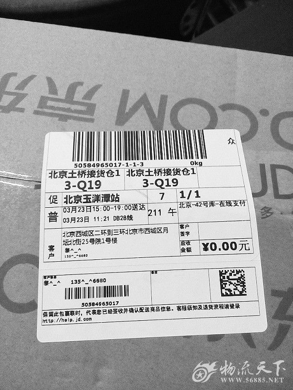 京東向記者介紹流程:配送員在站點收貨,掃描包裹上的條形碼,用戶信息被錄入系統(tǒng),送貨時,根據(jù)訂單號找到用戶包裹,點擊“撥打電話”便可以與用戶取得聯(lián)系,且所有通話都會被通信平臺監(jiān)管。
