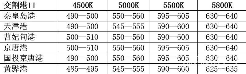 從對(duì)環(huán)渤海六個(gè)港口交易價(jià)格的采集計(jì)算結(jié)果看,本報(bào)告期,24個(gè)港口規(guī)格品中,價(jià)格持平的港口規(guī)格品7個(gè);價(jià)格下降的規(guī)格品17個(gè);沒(méi)有價(jià)格上漲的港口規(guī)格品。