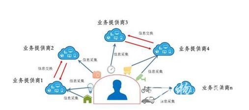 物聯(lián)網(wǎng)發(fā)展將帶來百億級(jí)設(shè)備,而這些設(shè)備將分屬于不同的平臺(tái),形成中心化的設(shè)備連接結(jié)構(gòu)。不同的設(shè)備獲得用戶的狀態(tài)信息都是片面的,但由于分屬不同的業(yè)務(wù)提供商、不同的平臺(tái),因此設(shè)備之間無法進(jìn)行直接信息的交換或交易。在現(xiàn)有的物聯(lián)網(wǎng)信息交互模型下,設(shè)備之間的信息交互需要通過設(shè)備所屬平臺(tái)進(jìn)行(當(dāng)然信息交換的前提是設(shè)備所屬業(yè)務(wù)提供商之間已經(jīng)達(dá)成了一致),這種信息交換模式不僅效率低,而且需要業(yè)務(wù)提供商之間達(dá)成一致,并需要平臺(tái)之間互聯(lián)互通技術(shù)的支持。物聯(lián)網(wǎng)現(xiàn)有的信息交換模式如圖3所示。